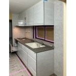 ・引き出しタイプのシステムキッチンに交換したい。 ・食器棚、ラック棚、既設カップボードを撤去して大きな一体のカップボードを設置したい。 ・洗面所、廊下への動線は活かしたい。