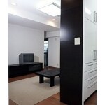 収納とパーテーションでスペースの使い分け。