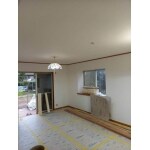 【工事内容】 壁一部解体復旧・床上張り・建具2カ所取付・収納枠造作・巾木廻り縁施工・R下がり壁造作1ヵ所・建具枠造作1ヵ所、壁天井クロス張替え、壁掛けTV下地造作