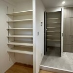 トールタイプと家電収納付きカップボードで収納力を向上させました。また、パントリーも造作しました。