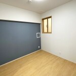 寝室は最低限の広さとし、もう一つの部屋との間にウォークインクローゼットを配置しました。北側にエアコンが設置できるよう、隠ぺい配管で工事しました。