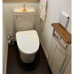 既存のトイレにウォシュレットを設置しました。 汚れにくいデザインで、ノズルは温水で除菌洗浄機能がついている商品をご提案させていただきました。 便座はワンタッチで着脱可能なので、気になる奥までお掃除しやすい構造です。