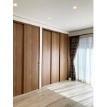 クローゼット扉はパナソニック社のベリティス。カラーはチェリーです。3枚連動引戸を採用しました。