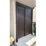 昔ながらの引戸がモダンな感じで生まれ変わりました。縦通しデザインなら、光が差し込むけど、外からの視線は遮ります。 コンクリート調の床材でスタイリッシュな空間に仕上がりました。