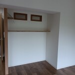 室内窓を取り付け、ピアノの楽譜用の棚、インターネットのルーター置き場(配線も移設)しています。