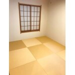 和室の土壁をクロスに張替えと縁なしビニール畳に入替えました。