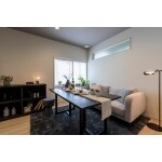 多角形の壁をメリットとして感じて頂けるように、天井形状は多角形の壁に平行になるように斜めでご提案。それだけでもモダンな空間になります。エアコンは天井埋込をご提案し、壁面をスッキリとさせました。 お仏壇を置く収納カウンター、家電収納は造作家具でご提案し、ツートーンにする事によりスタイリッシュさが増します。寸法もしっかりと打合せしました。 TVは壁掛にされるとの事だったので、後の収納を利用しDVDスペースとしてのニッチをご提案。 キッチン側の多角形は変形カウンターをご提案。炭酸水メーカーや圧力窯などの家電をお持ちだったので、使いやすい位置でご提案しました。 イメージは明るい床がお好みだとの事で、そこから全てのコーディネートはお任せ頂き、素敵なスタイリッシュモダンなLDKが完成しました。 ハード面では、しっかりと区画断熱をして、内窓、断熱性の高い窓を入れました。
