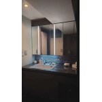 長年使用してきた洗面台をホテルライクなテイストへリフォームしました。 メーカーショールームでご覧いただき決定された商品は『ルミシス』です。カウンターは、まるで本物の大理石のような石目模様が美しい“ラピシアカウンター”。黒で統一されたデザインで、高級感漂う空間となりました。 プランが決定していた浴室と洗面に合う内装を提案してほしいとのご要望でしたので、アドバイザーが施主様の理想のイメージに合うクロスを吟味し選定。クロスはグレーに少しラメが入ったタイプなら黒で統一した高級感のあるバスルームに合うと考え、施主様に何種類も検討して頂き決定しました。