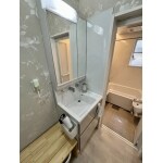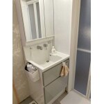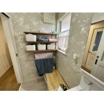 2列型のキッチンのLDKに変えるために和室を洋室にしてバリアフリーとしました。照明器具もすべてダウンライトの調光式なので光色を変えるとお部屋の雰囲気が変わります。また造作の棚を付けさせて頂き、日用品の収納をおしゃれに出来ました。
