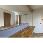 様々な間取りををお客様と検討しましたが、最終的に1階の車庫スペースにLDKと水回りスペース等をまとめる事にしました。限られたスペースの中で玄関土間・LDK・水回りを効率的に配置しました。また収納スペースには、可動式の棚を活用して限られたスペースでも効率的に多くの物を収納できるようにしました。 2階のアトリエ出すペースは、新たに壁を設置しご夫婦の寝室とホールを設けるようにしました。