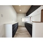 ダイニングテーブルが一体化したお洒落な二型キッチン