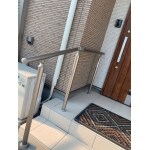 ・洗濯物が外から見えないようにするため、高さ等に考慮した目隠しフェンスを設置しました。フェンスのデザインは住宅の外観になじむようにサッシと同色のパーテーションとしています。 ・リビングに隣接した物干し場にリビングの床高さと同じウッドデッキを設置することで、スムーズに出入りと洗濯物干しができるようにしました。 ・玄関出入口の階段には安全性を考慮した手すりを設置しました。ご高齢のお母様も安心してご利用いただけます。 ・駐車スペースに砂利を舗装し、雨の日でも車がぬかるんだり水たまりができないようにしました。