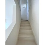 場所は同じですが、安全面に配慮し腰壁を設けました。向こう側が見えないよう蹴込み板、段鼻には滑り止めもつけ安心して昇降できる階段をご提案。