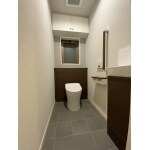 当初はなるべく抑えた工事内容でお考えでしたが、折角なのでと、手洗い器の交換から、内装も含めてリフォームさせて頂き、ダルブラウンのキャビネットで統一された、落ち着いたトイレ空間へ作り上げました。