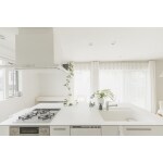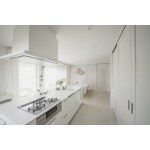 まるで海外住宅ような白い空間にマッチした、真っ白なアイランドキッチンになりました。デザイン性だけでなく、美しい白を長続きさせ、家事の負担を減らせるよう各所清掃性にもこだわってご提案させていただきました。
