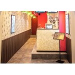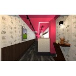 お店に入りたくなるような可愛いイメージをご提案しました。 壁紙だけでなく、照明・グリーンもコーディネートしました。