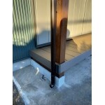 人工木ですとお手入れも簡単ですので人口木デッキをお進めしました。今回使用した商品はリクシルのレストステージです。コストも抑えれてお進めです。また、柱の加工が有りましたが職人さんがとても上手に仕上げてくれました。