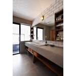 カウンターの広いモルタル洗面