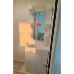 鏡が小さく、収納がなく、物がそのまま置いてある状態でした。