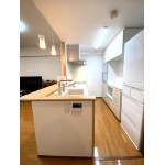 吊戸棚を無くしたのでリビングが見渡せ、明るくスッキリしました。キッチンはTOTOのザ・クラッソです。クリスタルカウンターやタッチレス水ほうき水栓が特徴です。キッチンと同じ扉デザインの周辺ユニットに、食器類や家電をたっぷり収納できます。キッチンワークをさらに効率的に。色はペアウッドホワイトです。