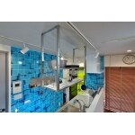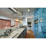 住まいづらさを感じていた居住中のマンションをスケルトンにして全面改装。LDに隣の和室を繋げて広いLDKを造りました。エアリアルヨガのハンモックを吊るせるように補強した梁に引き戸を設け、妻の寝室兼趣味のスペースとしています。キッチンはオープンにして鮮やかなタイルでアクセントウォールを演出。在宅勤務が主の夫の寝室には大きなデスクを造作して書斎兼用のプライベート空間としました。大きなWICと土間収納を設けていつも片付いているスッキリとした住まいを実現しています。