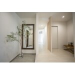 靴の脱ぎ履きで密集しないよう玄関に十分な広さを確保いたしました。リビングドアを開けると沢山の光が入り、さらに開けた印象です。増えがちな靴やスポーツ用品も玄関収納で完結できるよう、大きな土間収納を設置したこともスッキリポイントです。