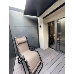 夜間、玄関前のライトアップが、門塀廻りの植栽と石積みを照らし、建物を引き立てます。 建物とカーポートの間には浴室・洗面化粧室から出入りできるテラスを新設しました。テラスの囲い壁のダーグレーと植栽が玄関まわりのアクセントになっています。