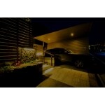 車が停められる様に敷地の右側部分を車庫スペースにして、アプローチを真ん中に持ってくる計画にしました。カーポートはLIXILのカーポートSCを採用。プライバシー対策にSCの横板のサイドスクリーンを取付け、天井には2カ所ダウンライトを設置。大切なお車を上からカッコよく照らしてくれます。アプローチの階段にはマレアストーンという御影のような模様が特徴の天然石を使用し重厚感のある空間に。袖壁には凹凸のある天然石タイルを使用。お庭側から見ると花壇になっており、笠木部分はちょっと腰かけるベンチ代わりにもなります。お庭部分がプライベートな空間になるように、人工木フェンスで道路からの目隠しをしました。柔らかな色味でプランターや雑貨を飾れる棚もあり、リビングからみても癒しの空間になること間違いなしです。カースペース、アプローチ、お庭からの見た目が格段にかっこよくなり、ライティングで夜の雰囲気も存分に楽しめる空間になりました。