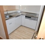 上部壁開口とカウンタ―設置、入口を廊下側にも設けて対面キッチンに変更しました。