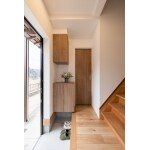 コストを抑えるため、壁は外側からの断熱ではなく、土壁を残したまま室内から断熱材付のプラスターボードを増張し、床下と屋根下は断熱性能とコストパフォーマンスのバランスが良い吹付断熱を採用しました。各部屋インナーサッシを設置し、更に断熱性能をアップさせました(ダイニングの出窓のみ、ものを置きたいためインナーサッシではなくガラスをペアガラスに取替)。LDKは対面キッチンへの憧れもお持ちでいくつか配置案を検討しましたが、筋交いの関係で壁が一部残ることもあり、ダイニングテーブルの代わりにカウンター形式で食事をするなど空間の使い方にも制限ができるため、今の配置のままにしてリビングスペースを確保する方向になりました。もともとホールがなく勝手口のような仕様になっていた玄関は、隣の部屋の窓ギリギリまで壁を下げ、出来る限り空間を広げることでホールと収納スペースを確保しました。正面の既設の階段が馴染む床材をベースに、LDKは奥様お好みの北欧風な空間に、ご主人様のお部屋はインダストリアルなかっこいい空間に生まれ変わりました。