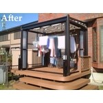 今回採用したウッドデッキ材は樹脂に木粉を50%混合したもので、樹脂製でありながら、木質感が表現されています。 腐食・褪色が起こりにくく、耐久性に優れます。 工事内容 TOEX ウッドデッキ 樹の木