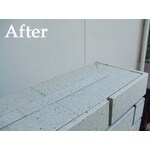 既設の玄関アプローチ(レンガ調)に合う、タイルのご提案をさせていただきました。外塀に水が回って、塗膜が亀裂を起していたので、高圧水洗でしっかりとばし、乾燥を充分した上で、施工を行いました。 工事内容 高圧水洗後、乾燥養生 笠木及巾木、斫りモルタル調整 (下地処理) INAX フェイブ4番 貼付
