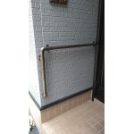 段差を上り下りする際の補助となるように、手すりをお取り付けしました。 ご利用者様の手が無理なく届く位置を確認し、しっかりと固定しています。