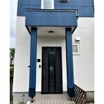既存の屋根色に合わせたネイビーとホワイトの配色が素敵です。サッシのホワイトもアクセントになり可愛いです。