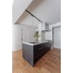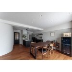 南側のメインバルコニー側の2部屋をLDKに取り込み、ワンフロアの広々としたLDKに。隣接する寝室の壁を曲線にし解放感のある空間を提案させていただきました。