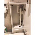 タンクレスになった分、更に手前側のスペースが広がりました。手洗い器下収納に掃除道具が収納でき、場所を取らないスリムな手洗い器が設置されました。