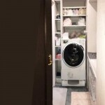 洗濯機の上に洗濯ポールを掛けておられ、奥の収納が十分活用できない状況が見られました。横スペース部分も収納効率を上げれないか考えました。