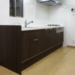 キッチンの床はタイル張りでしたので、夏は涼しいですが冬は底冷えする冷たさでした。 また、キッチン下の収納は開閉式の扉でした。