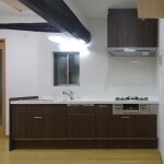 床はタイルからフローリングにすることをお勧めしました。床タイルとコンクリートを斫り防湿シートを敷き、壁と床には断熱材を入れ、窓と勝手口ドアは断熱性が高い商品を採用することで、今までの冬場の寒さから解放されることをお伝えし、ご提案しました。