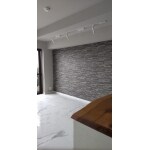 床には、ご要望通りの大理石調の大判タイルをご提案。 既存のフローリング床に上張りすることをご提案しました。 壁には調湿効果と消臭効果のある石調のタイルをアクセントにご提案しました。 ゆっくりと落ち着けるように色はダークグレーにして、 スポットライトで際立たせる工夫をしました。 また、間接照明を各箇所に設けています。 もちろん照明は、調光ができ色も変えられるタイプをご提案。夏は、白に近い涼し気な光、冬は暖かい光でくつろいでいただければという思いからです。