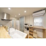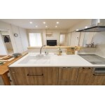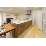 キッチン設備を設置し、色合いをナチュラルな雰囲気にしました。 またダイニングを横並びでレイアウトとすることで、配膳効率が上がります。