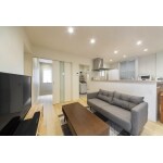 キッチン、ダイニングも一緒に併せたリビングになりました。 部屋の奥にある扉を開けると水まわりにつながり、生活動線がコンパクトに仕上げた間取りにしました。