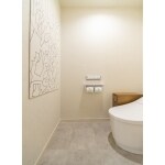 タンクレス風トイレを採用したことで、空間を広く使うことができます。 消臭効果のあるエコカラットを設置し、デザイン性もプラスしました。