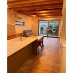 床の張り替え、エアコンの位置変更、壁側の収納をTV置き場に変更。掃き出し窓を真空ガラスに交換。外にデッキを設置。ソファ側にあった腰窓は小さくしました。天井にも木をつけて和モダンな雰囲気になりました。