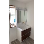 工事後、1階洗面化粧台です。 タカラ「ファミール」洗面化粧台を設置しました。