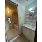 一面鏡には傾斜がついていてメイクなどがしやすい仕様になっています。細々としたボトルや化粧品もたっぷり収納できます。床・壁・天井も張り替えることで一気に雰囲気も変わります。