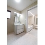513.フローリングと洗面台の色味がほどよく高級感漂う洗面室