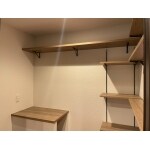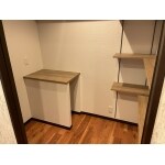 キッチンを移動させたことによってできたスペースをパントリーとして活用することに。コンセントもあるので普段使用しない家電製品を置けるように◎