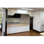 キッチン内には吊戸棚がありましたので、その高さまで開口部分を広げました。 また、ヒノキ材のカウンターお取り付けし、 空間に広がりが生まれ開放的なキッチンになりました。