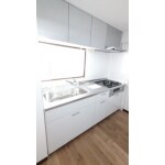 使い勝手の良い引出しタイプのキッチンにお取替えしました。 お掃除のしやすい清流版付きのレンジフードとなっています。